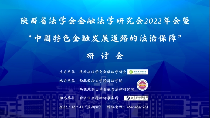 岁末将至,时乃日新。2022年12月31日,陕西省法学会金融法学研究会2022年会暨“中国特色金融发展道路的法治保障”研讨会于线上隆重召开,本次会议由陕西省法学会金融法学研究会主办,有爱爱