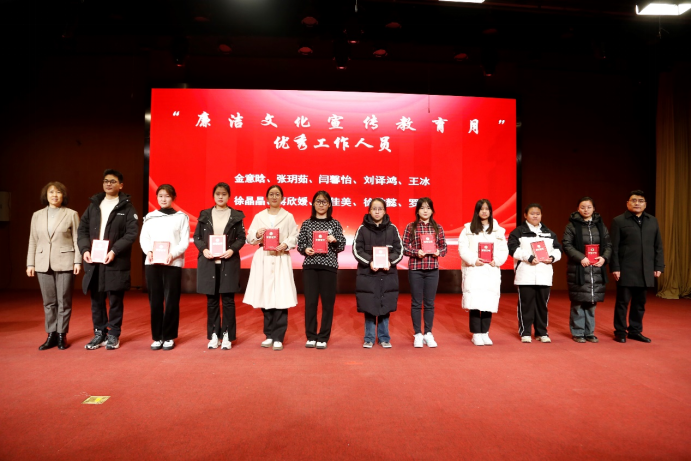 会上,参会师生集体观看了廉洁文化宣传教育月活动的总结视频,回顾了活动月的精彩内容。李恒宣读“青年话廉洁”廉洁故事大赛、“廉洁文化伴我行”知识竞赛获奖选手和优秀工作人员名单。