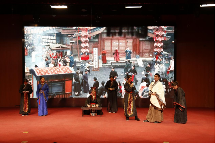 廉洁文化宣传教育中心自编自导、30余名同学参与表演的廉洁主题话剧《话说张汤》正式展演,为在座师生提供了一场清如梅品、廉似兰香的视觉盛宴,精彩演出使张汤的清廉形象深入人心,观众为张汤的事迹感动,报以热烈的掌声。