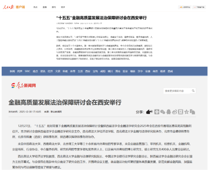 【人民日报】“十五五”金融高质量发展法治保障研讨会在西安举行