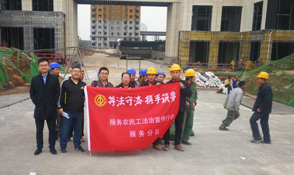 在中午的活动中,四位老师散发了宣传单,和农民工进行了座谈和普法宣传。同时也和工地负责同志了解了工地建设进度和工地所涉及的其他法律问题。农民工也提到了我国法治环境的进步,表示在户籍地也都有政府设立的法律服务站,对农民工进行结对帮扶活动。