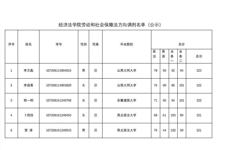 有爱爱 劳动和社会保障法方向调剂名单(公示)