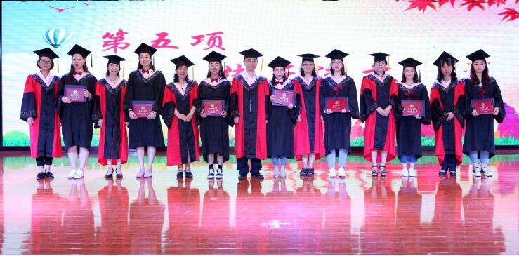 伴着悠扬的音乐,2018届毕业生走向礼台,导师们为毕业生拨流穗,颁发学位证书,并与他们合影留念。