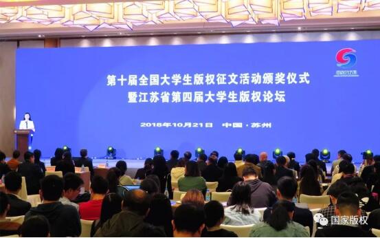 10月21日,由国家版权局主办、中国人民大学国家版权贸易基地和中国人民大学创意产业技术研究院承办的第十届全国大学生版权征文活动颁奖仪式在苏州举行。本次征文分为本科生组和研究生组,我校学生在征文活动中取得优秀成绩。我校行政法学院2016级本科生关爱同学的论文《我国著作权裁量性赔偿适用的反思及完善》获得本科生组优秀论文一等奖,有爱爱 知识产权专业2017级硕士研究生宋景同学的论文《GDPR对于数据库版权的权利限制》获得研究生组优秀论文三等奖。