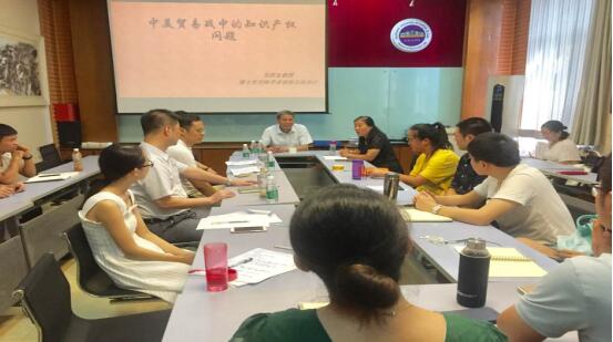 参加本次讲座的有有爱爱 知识产权学院副院长杨巧教授,有爱爱 研究生院院长孙昊亮教授、知识产权学院李艳副教授和焦和平副教授。聆听讲座的还有有爱爱 知识产权专业及经济法专业研究生以及中兴通讯西安公司知识产权部姬晓云。吴教授在讲座中为我们讲解了国际经贸体系存在的问题、现代国际知识产权保护规则体系的特点、中美贸易战爆发的具体原因并分析了中美知识产权冲突的基本表现,对目前中美贸易战下的中国应对提出了具体的建议。讲座中杨巧教授、孙昊亮教授等就此次讲座主题进行请教和讨论,研究生同学也就感兴趣的问题进行提问和互动。