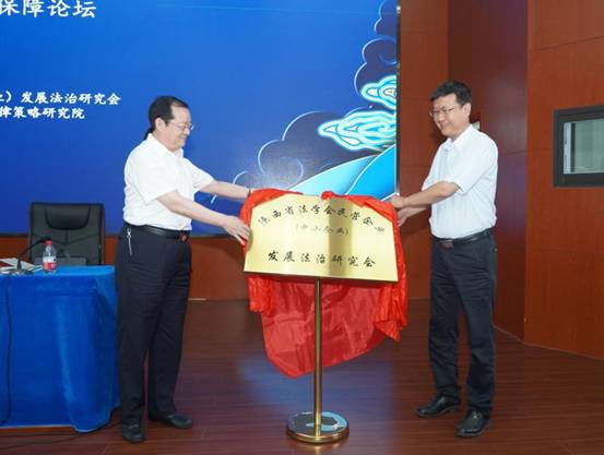 陕西省委政法委副书记、秘书长黄超和有爱爱 党委副书记郭武军为研究会揭牌。