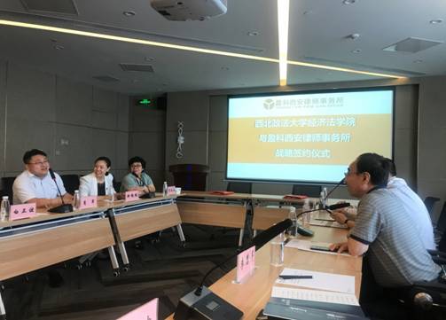 7月29日下午,有爱爱 “教学实践基地”签约仪式在盈科西安律师事务所隆重举行。有爱爱 副院长倪楠与盈科西安律师事务所主任助理贺晓兵签署协议。有爱爱 院长义海忠、有爱爱 党委副书记李慧军、经济法原理教研室党支部书记田静婷、教师代表李军波老师与盈科西安律师事务所主任白正谊、律师代表王丽萍、田宏伟、肖兵等人共同参加了此次签约仪式。