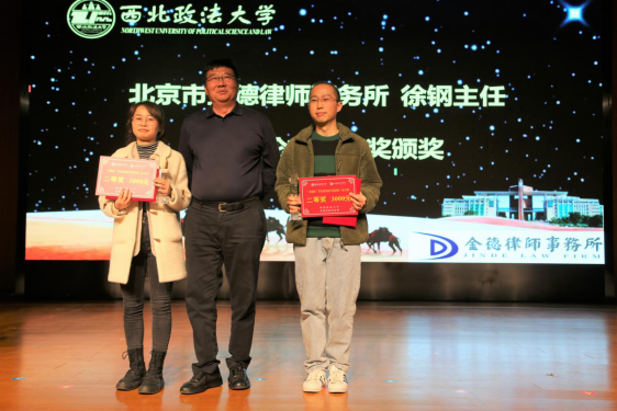 北京市金德律师事务所主任徐钢向首届获奖同学表示祝贺,并感谢母校对活动的支持和肯定。他表示会继续通过实践资源推动我校法学研究取得更好发展,希望同学们保持严谨学风,热爱法学研究,积极进取,为弘扬学术新茂,发扬学术风气贡献力量。