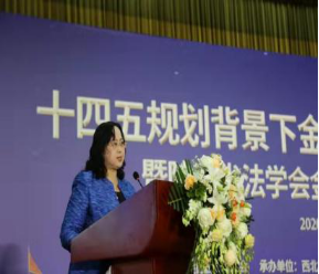 副校长王健教授、中国法学会银行法学研究会会长、中国政法大学王卫国教授(线上)、中国法学会银行法学研究会会长、西南政法大学副校长岳彩申教授(线上)、陕西省地方金融监督管理局局长苏虎超博士开幕致辞。