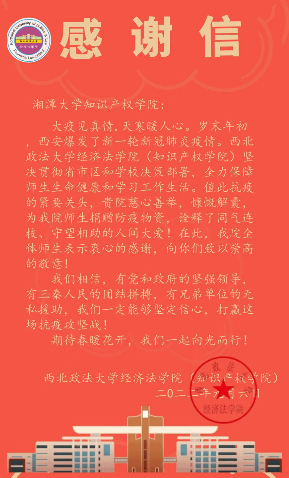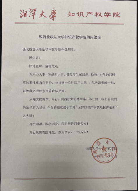 也接受到了来自湖南湘潭大学知识产权学院的关心。