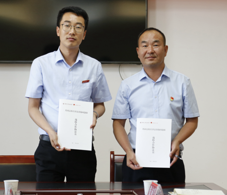院长助理车东晟与李建荣共同签署“共同富裕经济法治协同创新战略合作协议”。