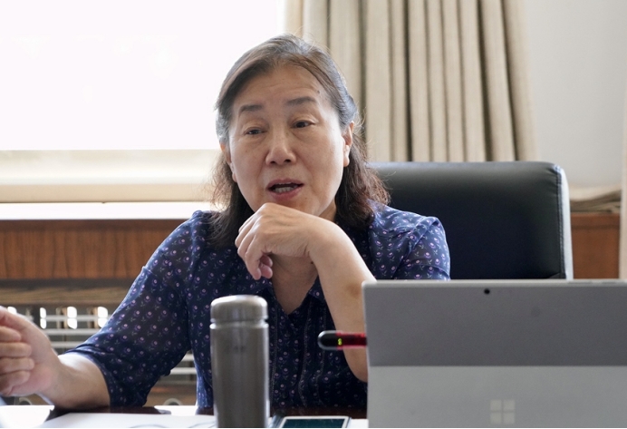 院长倪楠汇报了“十三五期间”知识产权法学科整体发展情况,重点介绍了该学科在教学、科研方面取得的成绩,同时,客观分析了“十四五期间”学科发展的困境和重点难点。
