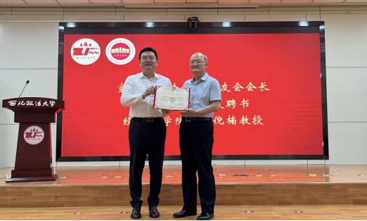 倪楠院长宣读了聘任强力教授为经济法校友会会长的任命决定并颁发了聘书。