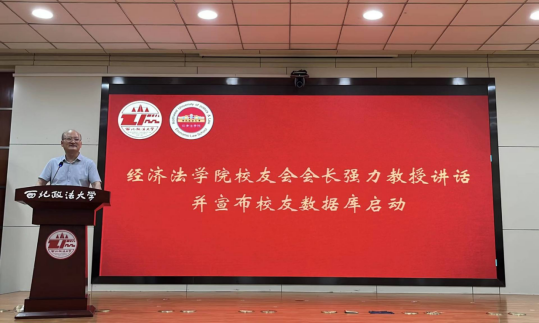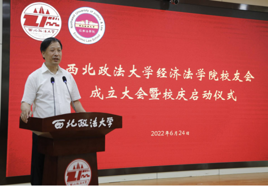 (知识产权学院)校友会会长强力教授发表当聘感言。他首先向与会的嘉宾、校友以及参与筹备工作的同仁们表达了感谢之情。他表示,在西安的校友,虽然年龄不同、专业各异、工作有别,但是西法大经济法校友的身份将我们紧密联系在一起。他将与理事会成员一起,秉承服务校友、服务母校、服务全国的宗旨,充分发挥社会团体的优势,依法依规开展丰富多样的校友活动,更好地服务社会经济、服务地方发展。同时,宣布启用了经济法校友数据库。