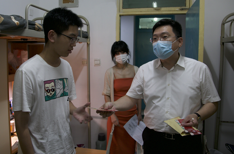 学院党委书记李建梅、院长倪楠、党委副书记李慧军、院办公室以及辅导员分别前往10号、12号学生公寓开展中秋慰问活动,为2022级新生送去祝福和关怀。