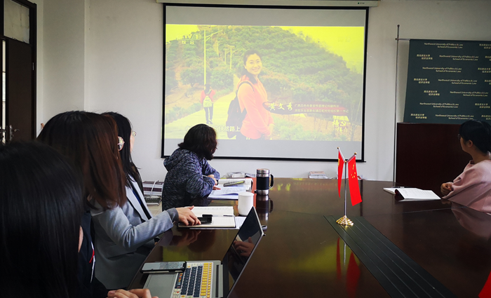首先,全体参会成员共同观看张富清、黄文秀同志先进事迹视频。通过观看视频,深入了解两位共产党员的先进事迹:张富清同志60多年来深藏功与名,一辈子坚守初心,不改本色,在部队时保家卫国,到地方时为民造福;黄文秀同志研究生毕业后投身于脱贫攻坚第一线,奉献自我。张富清、黄文秀同志不忘初心、甘于奉献的精神是广大党员干部和青年同志的榜样。